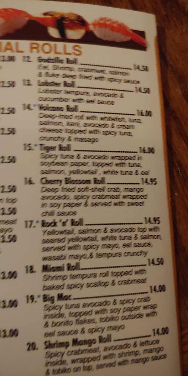 Spicy tuna. Avocado and spicy crab inside.topped with soy paper wrap with bonito flake. tobiko Outside. With eel sauce and spicy mayo