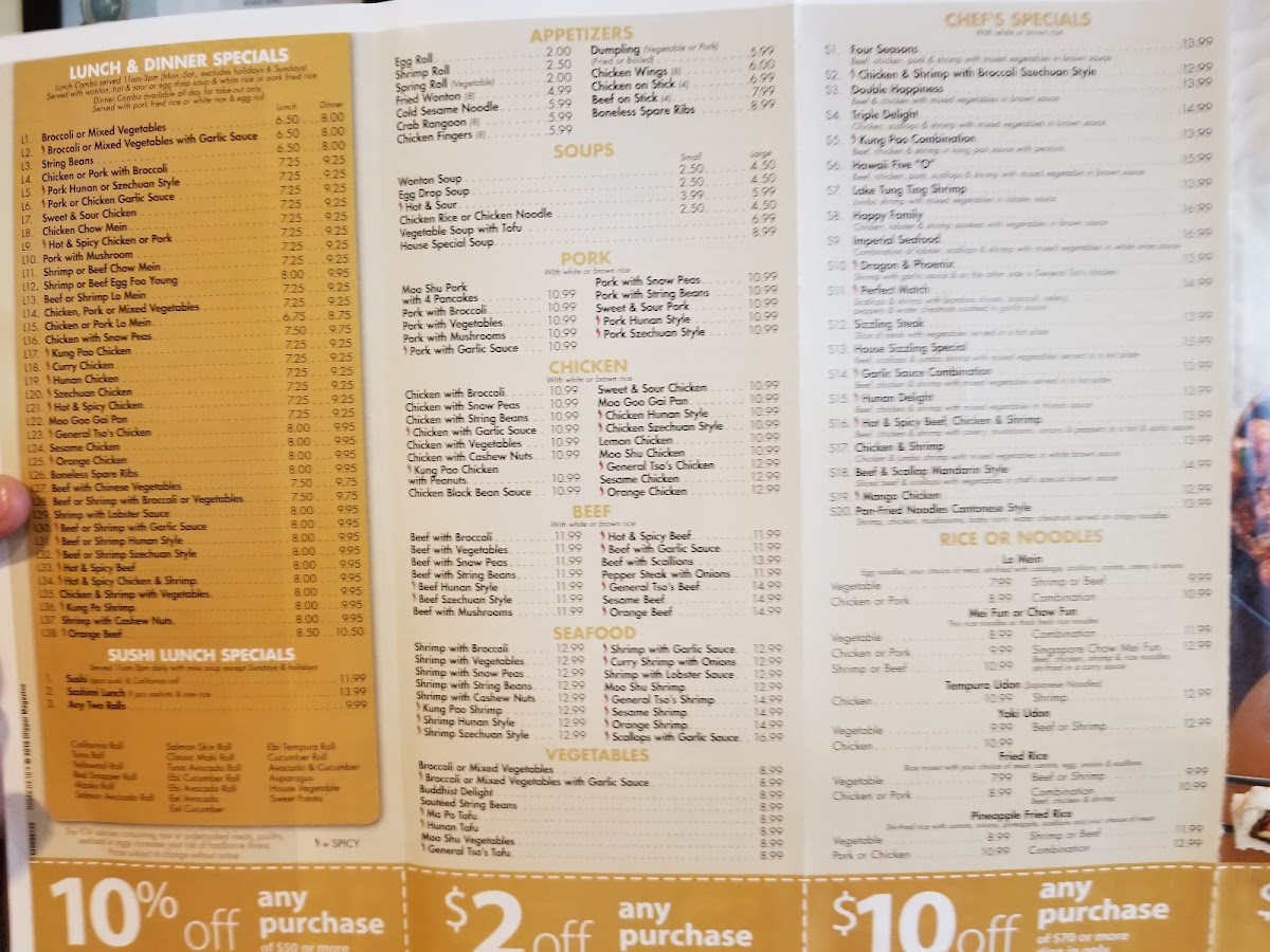 Scallops and shrimp with bamboo shoots,broccoli,celery,pepper &water chestnuts sautéed in garlic sauce