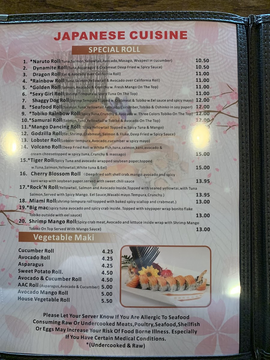 From regular roll menu (W.miso soup and salad